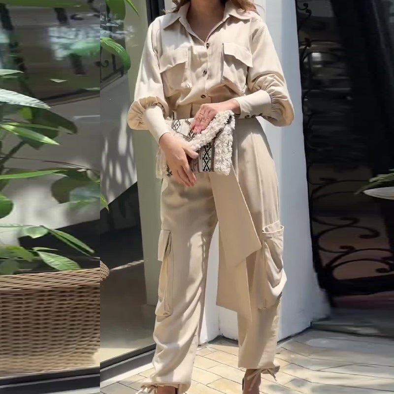 - Diseño Sofisticado: La blusa aporta un aire elegante y refinado, mientras que el pantalón resalta la silueta con un ajuste favorecedor.